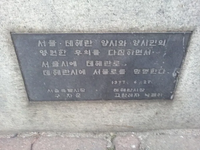 1977년 6월 27일 방한한 테헤란 시장이 이 당시 서울특별시장과 서울-테헤란 간 도로명 교환에 합의했습니다.